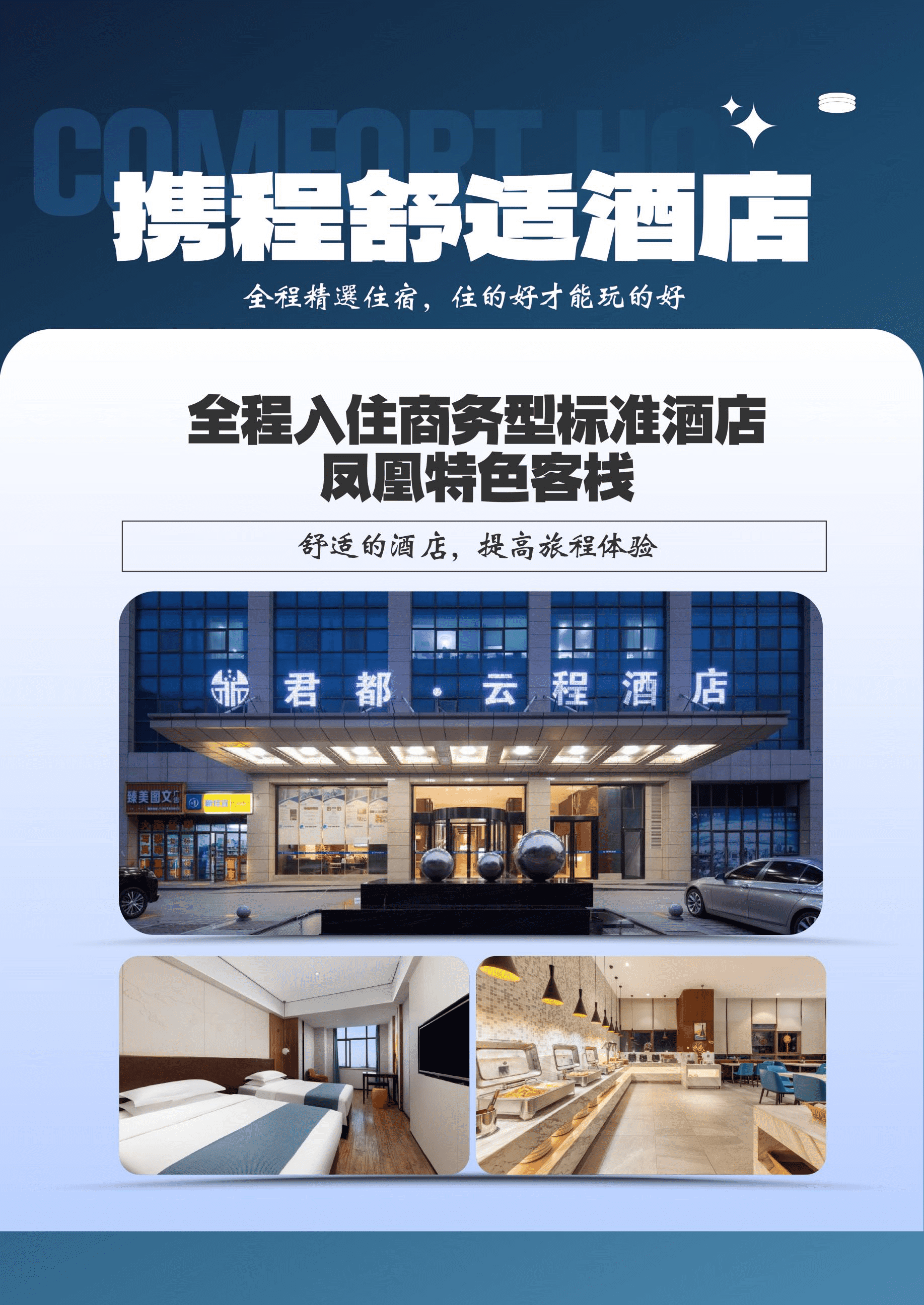 住宿全程入住商务型标准酒店,凤凰特色客栈(不含单房差),不提供自然单间