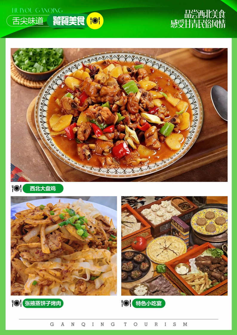 正餐体验特色美食:张掖蒸饼子烤肉、西北大盘鸡、藏式风情餐,感受地道西北。