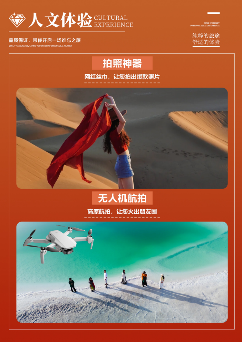 住宿:全程优选网评3晚网评4钻/星酒店(含湖畔酒店)。酒店住宿若出现单男/单女,客人则须补房差入住双人标间。3人同时报名若选择入住一间房(不退单房差)。西北属于欠发达地区,酒店的硬件设施及服务意识相对落后,无法用发达地区的标准衡量。如1人全程入住单独一间房,需补单房差。