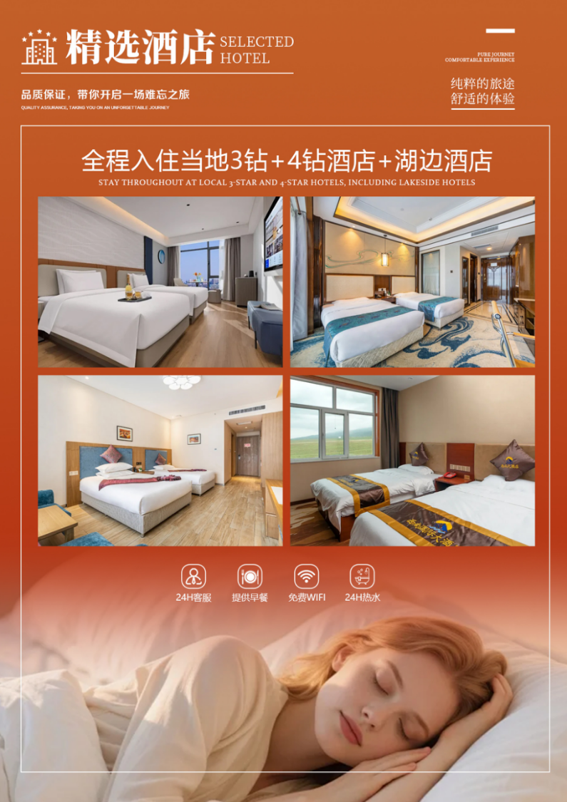 甄选住宿:全程3晚4钻酒店(含1晚湖畔特色酒店)+3钻酒店