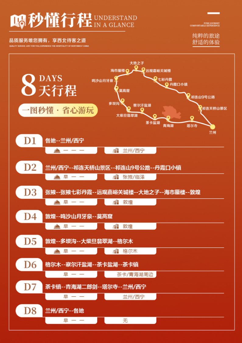 D8 | 兰州/西宁-返回出发地 | √ | × | × | —— |